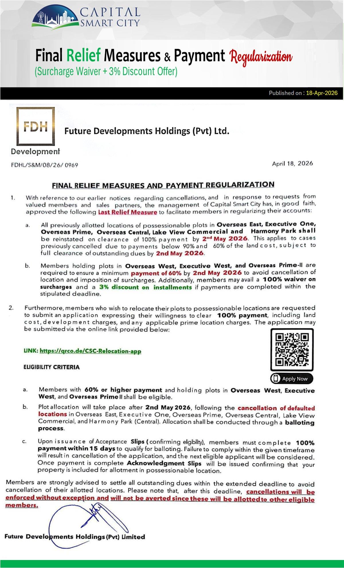 Final Relief Measures & Payment Regularization Policy - Capital Smart City